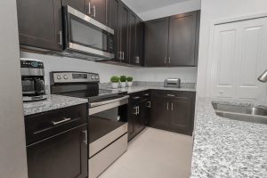 - Features: "Dark Expresso Cabinets, Stone Grey Tile, Granite Luna Pearl, Full Kitchen with Stainless Steel Appliances, Microwave Stainless Steel Dishwasher Stainless Steel Fridge Stainless Steel Stove Stainless Steel "